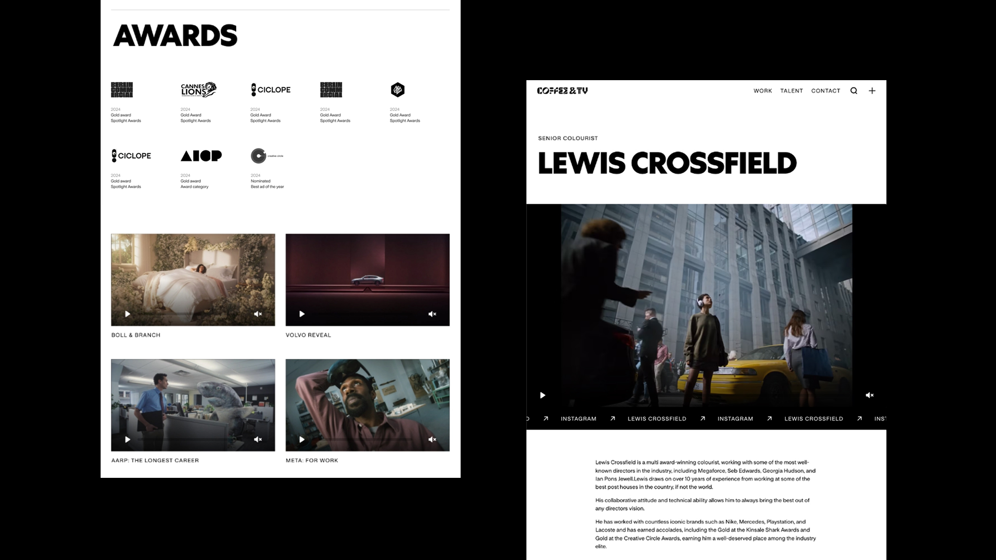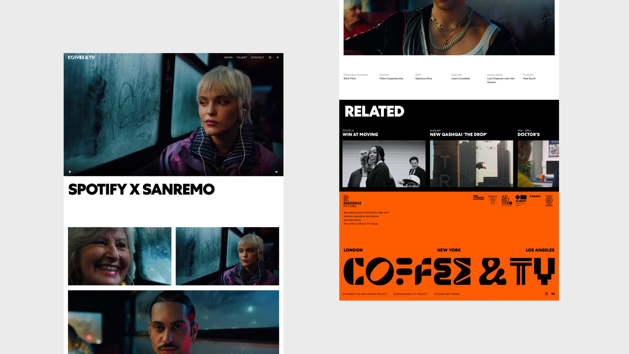 In particular, the design of the website needed to put the work at the forefront, we adopted a more contemporary design that was able to support the work, whilst also showing Coffee & TV as a global powerhouse.