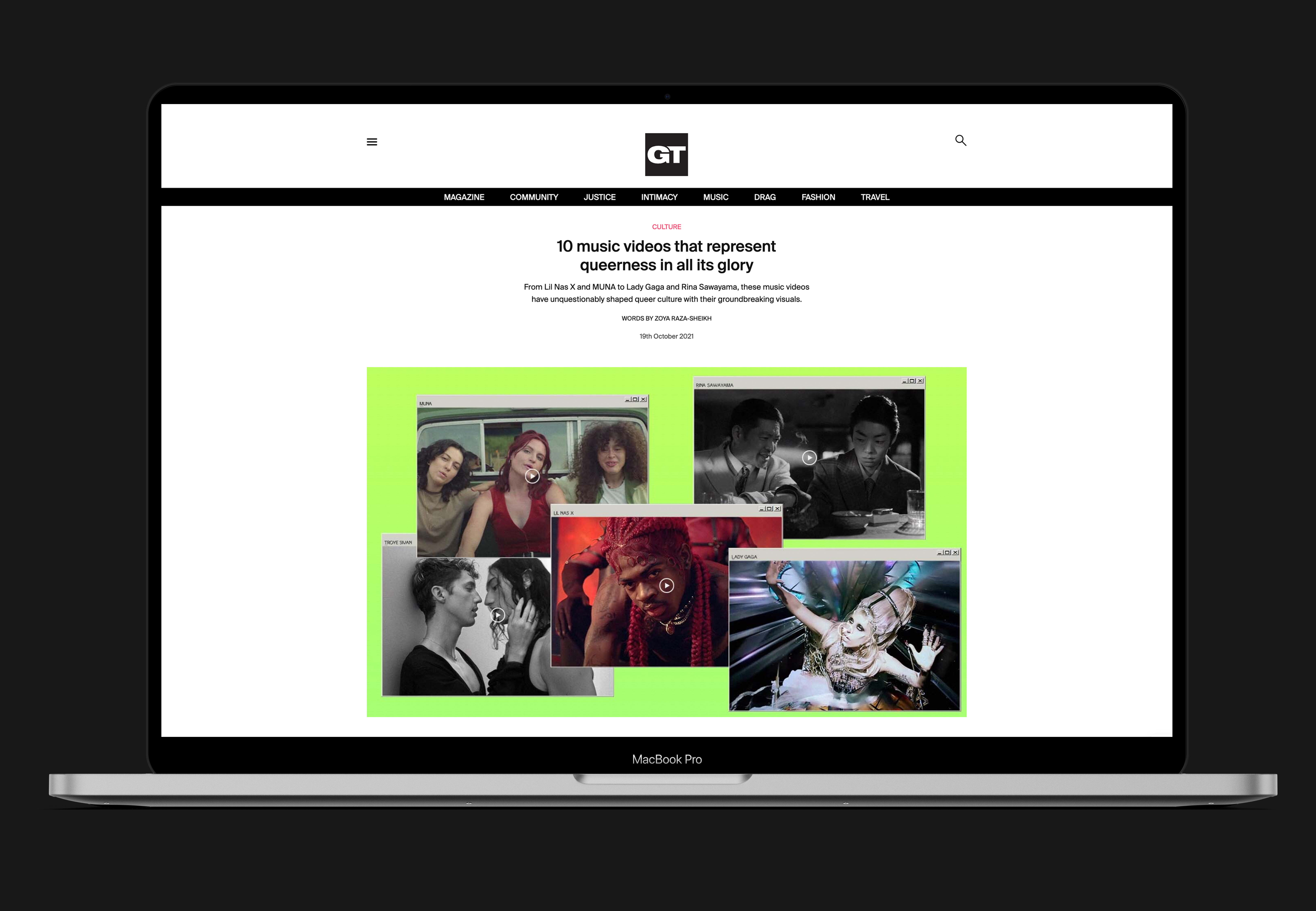 Web header design for GAY TIMES’ online editorial features. Topics ranging from queer cult classics to the importance of smaller pride events, the design attached to each story helps bring it to life.